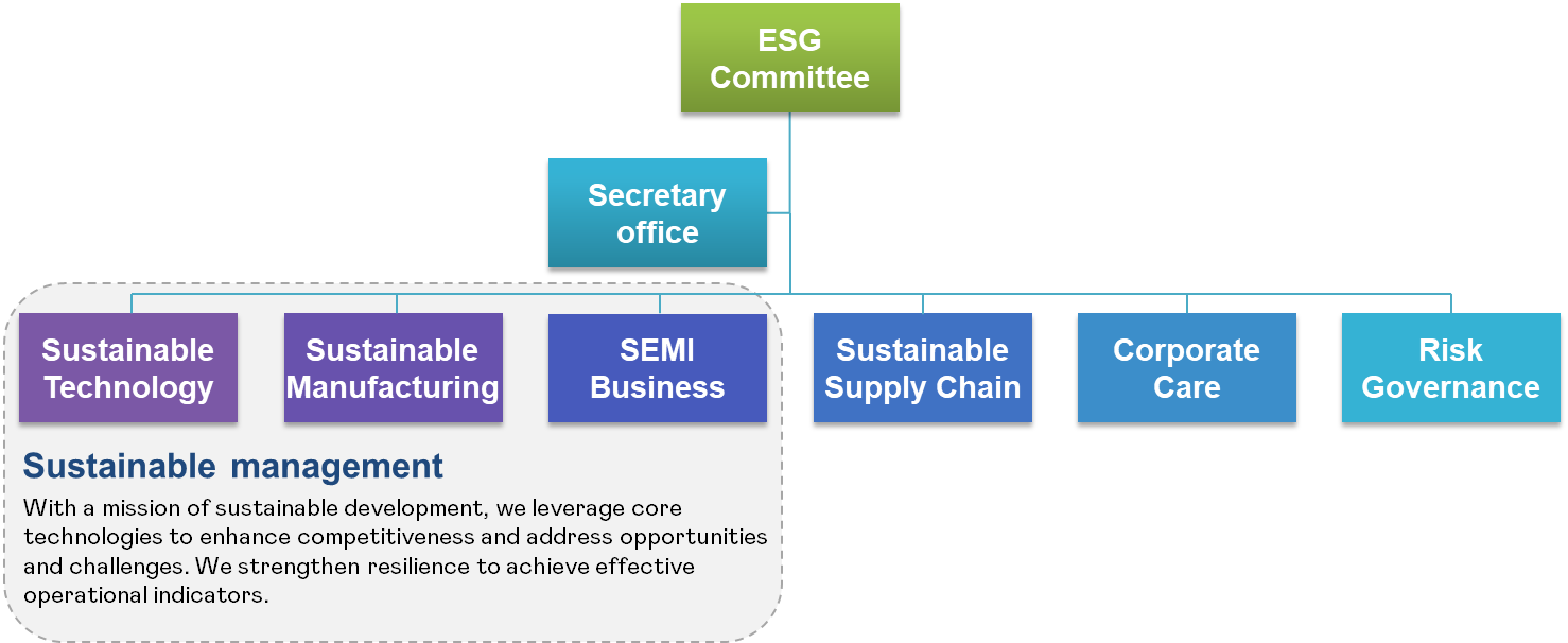 To reference global business development trends, promotional plans effectively, integrate horizontal resources, enhance the management efficiency of social responsibility, meet the expectations of stakeholders on environmental protection, social care and corporate governance, and ensure the sustainability of corporate operations, AUO Crystal established the ESG committee.
